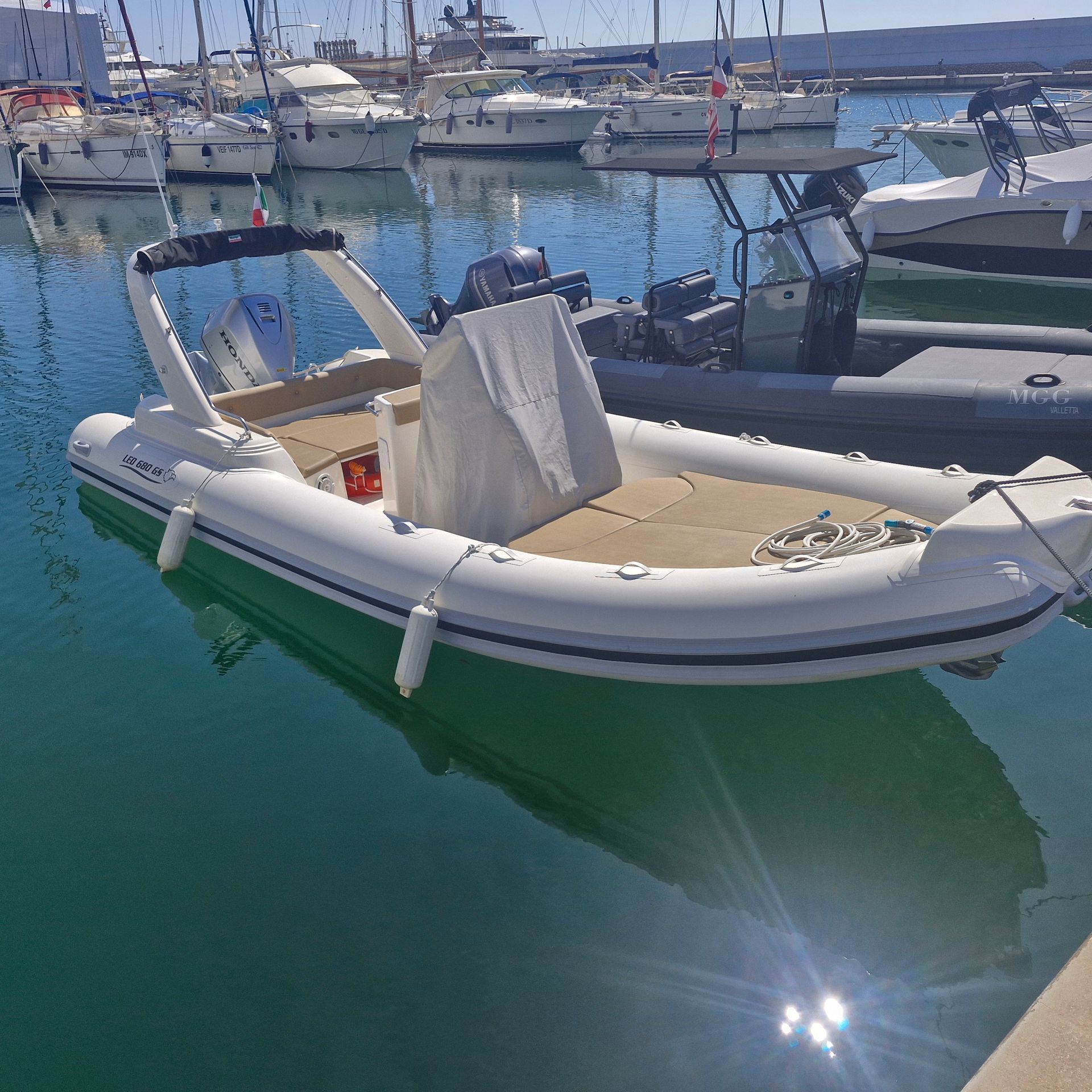 Le imbarcazioni con patente racchiudono il meglio che il mercato nautico possa garantire: basti pensare che una di esse monta l’esclusivo motore Mercury Verado con 300 HP e 8 cilindri.